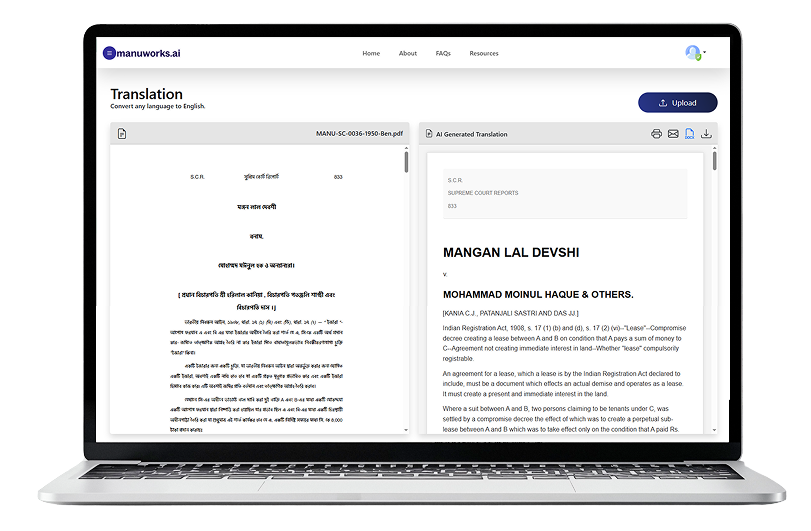 An AI tool that accurately translates legal documents, contracts, and case materials from multiple vernacular languages to English, while the preserving meaning and context.